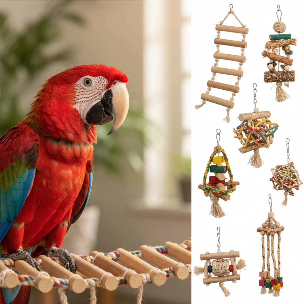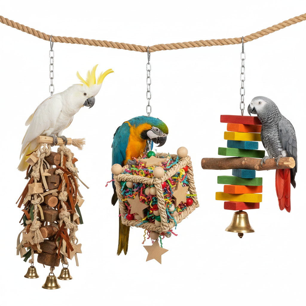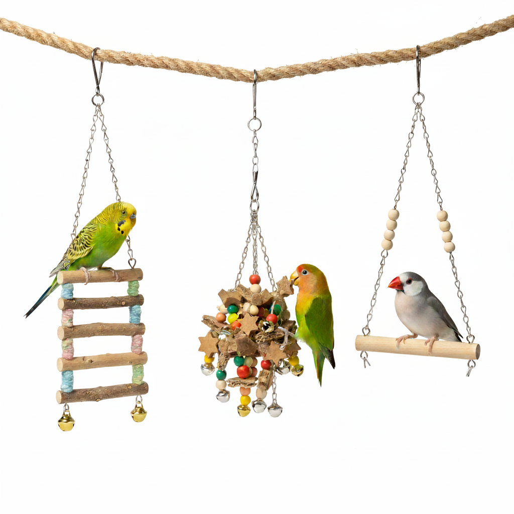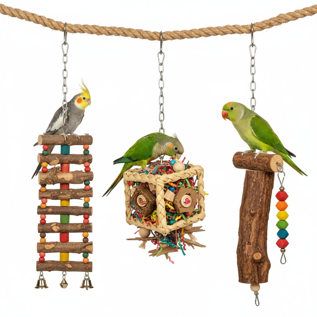 Hamare toys 100% natural aur non-toxic materials se bane hain, jo birds ke liye mukammal mehfooz hain.